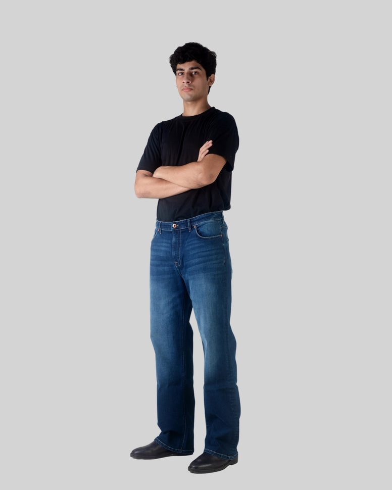 The Fit 3 - Straight-fit jeans with a regular-rise waist and a relaxed leg from hip to hem. Crafted from 12oz stretch denim in dark wash. Features a stone wash with enzymes, hand-crafted whiskers and sanded details that add authentic contrast across natural wear areas.